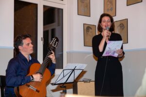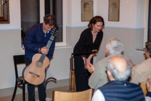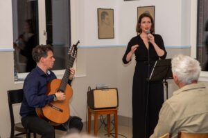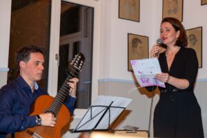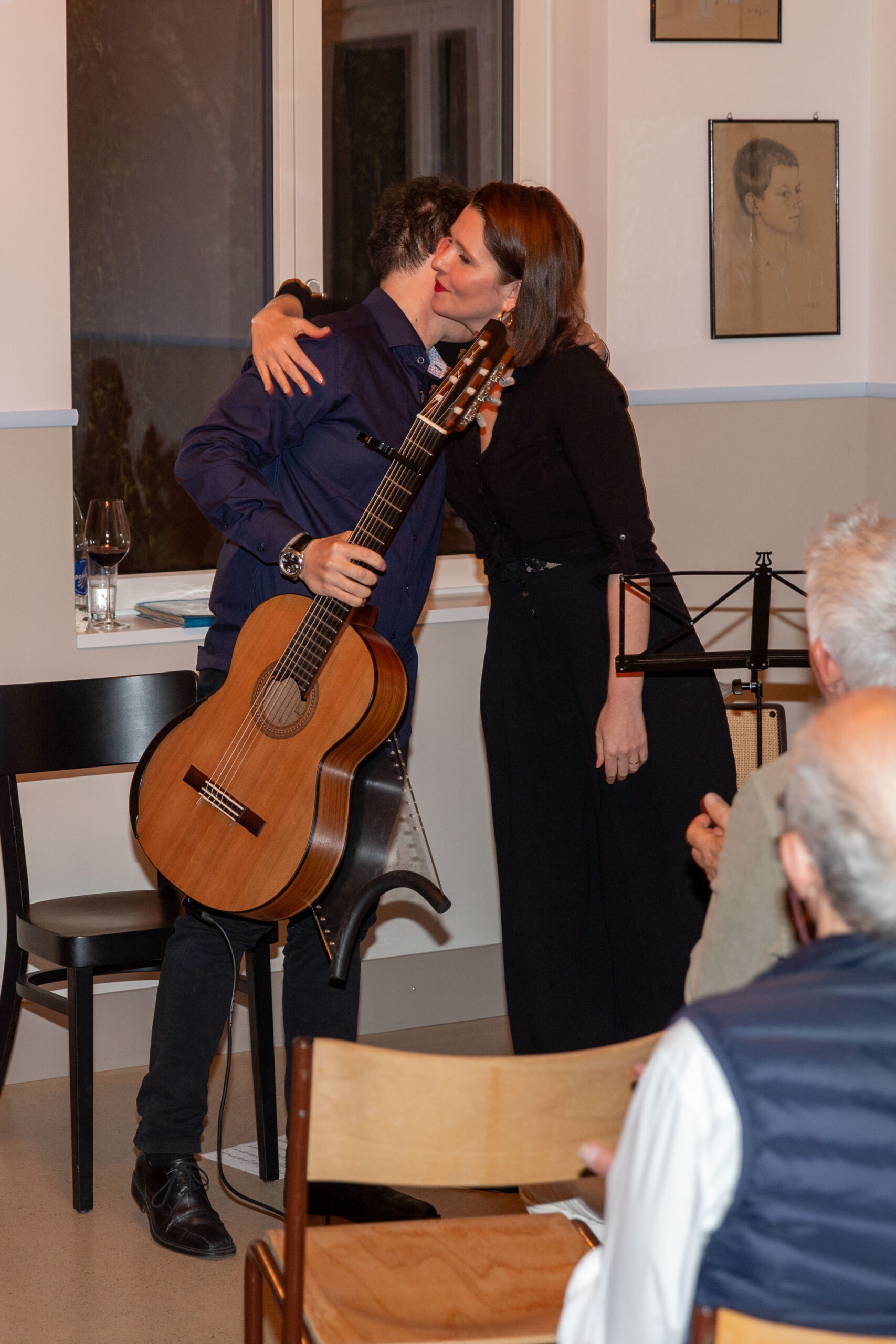 Was für einen stimmigen Abend erlebten die 45 Gäste der Wanderbühne mit dem Duo Nickelé & D’Attellis. Bezaubernde Gitarrenklänge und eine herrliche Stimme füllten den Raum des Cafés Blumenzauber mit argentinischer Tangomusik.