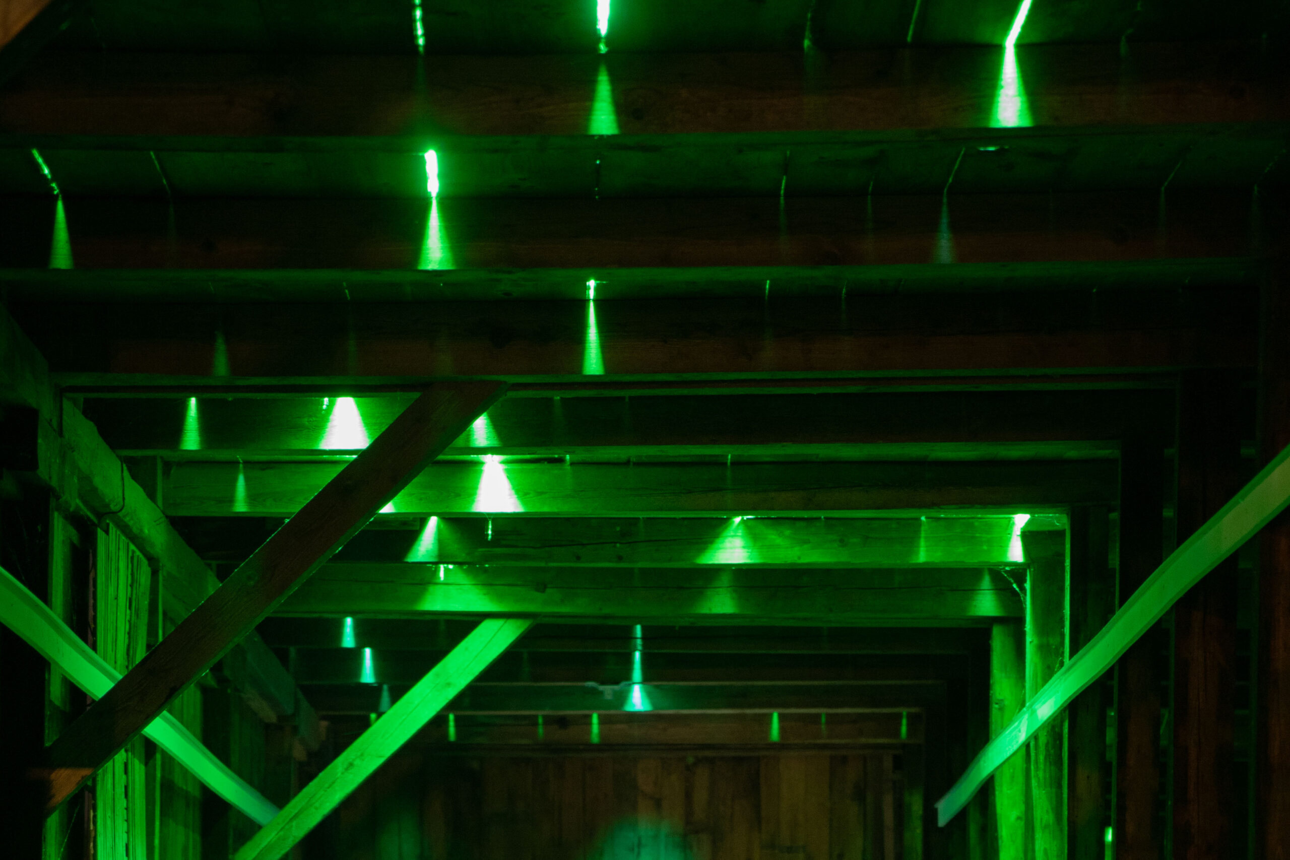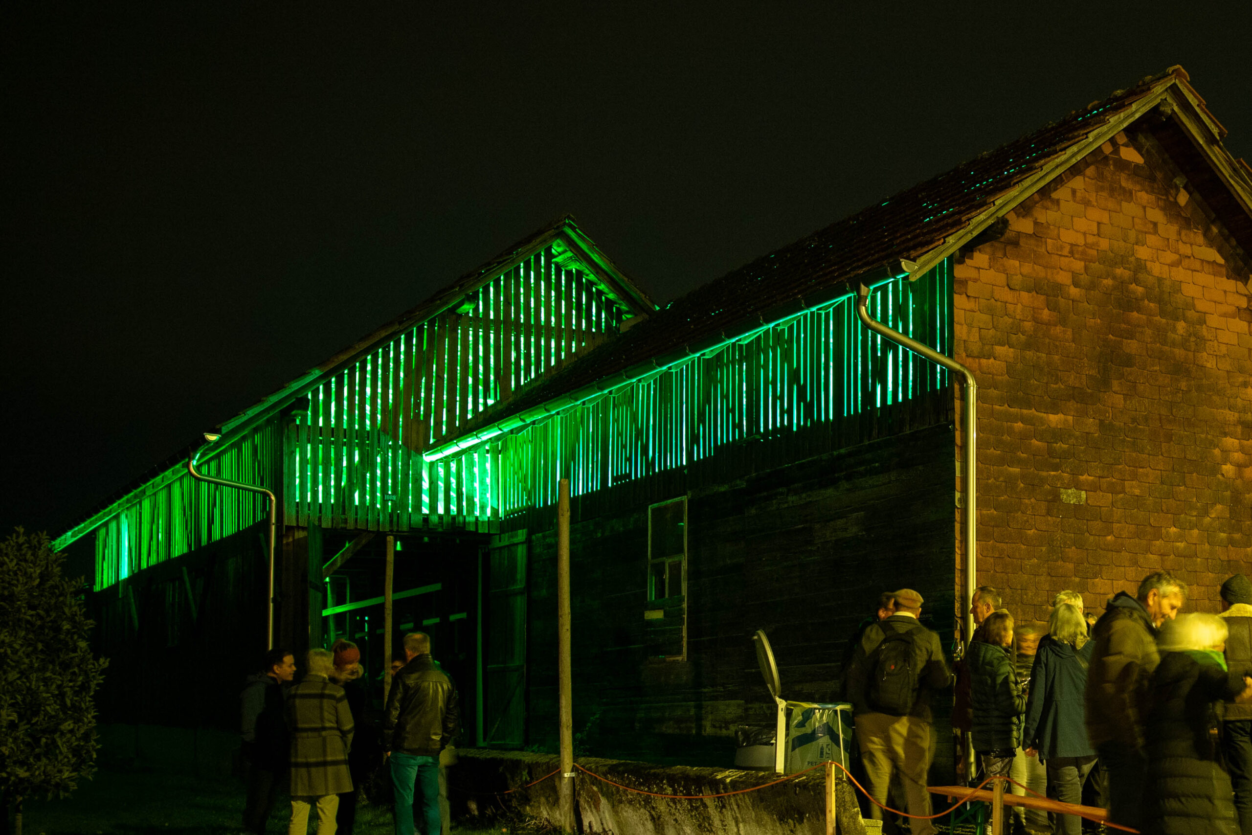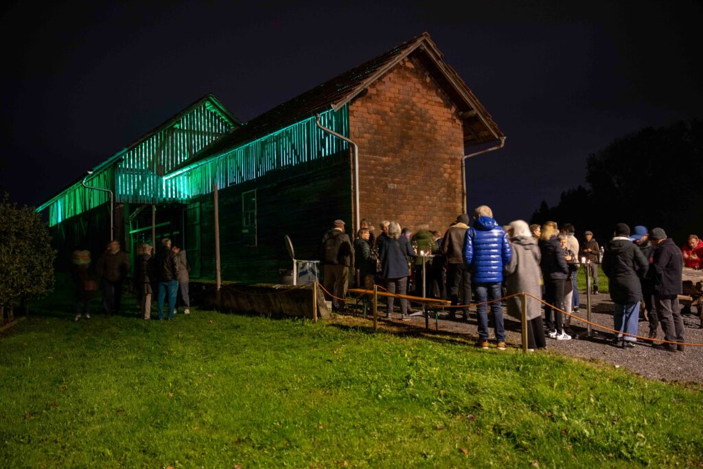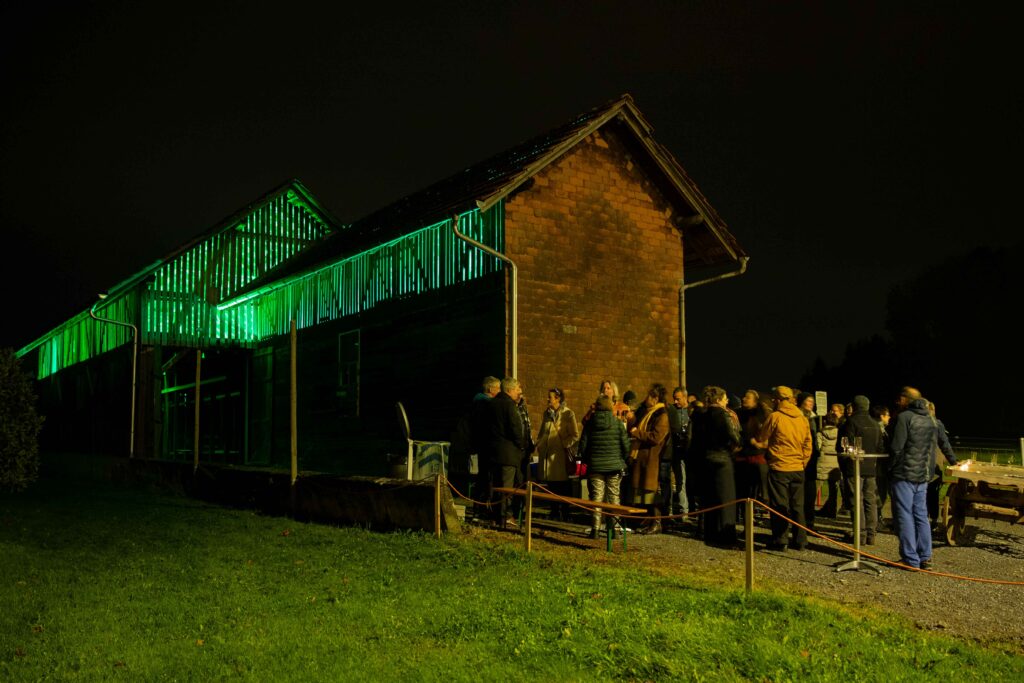 Die historische Bauweise des Gebäudes, einst landwirtschaftlich genutzt und heute ein aussergewöhnlicher Kulturort, bot den idealen Rahmen für eine Installation, die Licht, Klang und Architektur vereint.